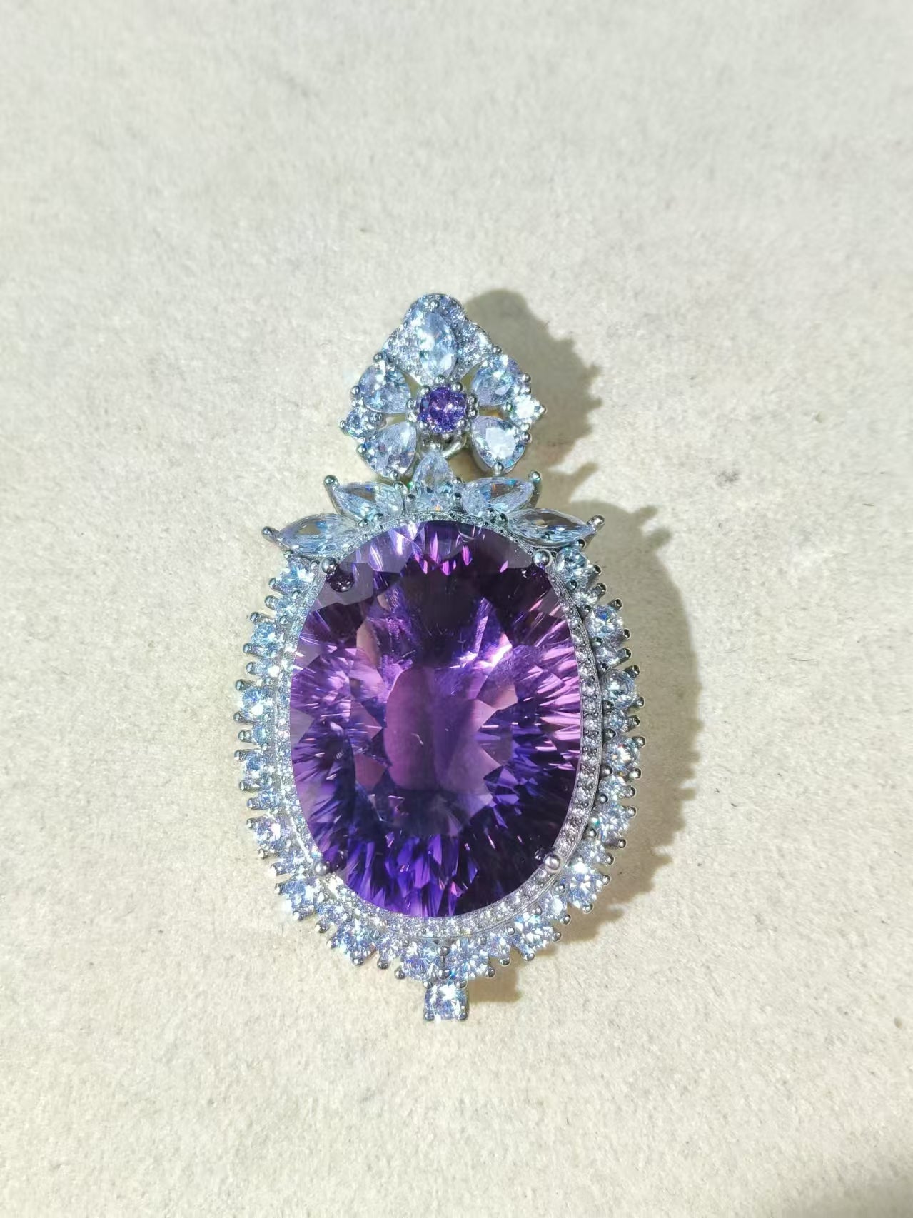 Natural Amethyst Pendant S925 Setting with Zircon Thousand Cutting
