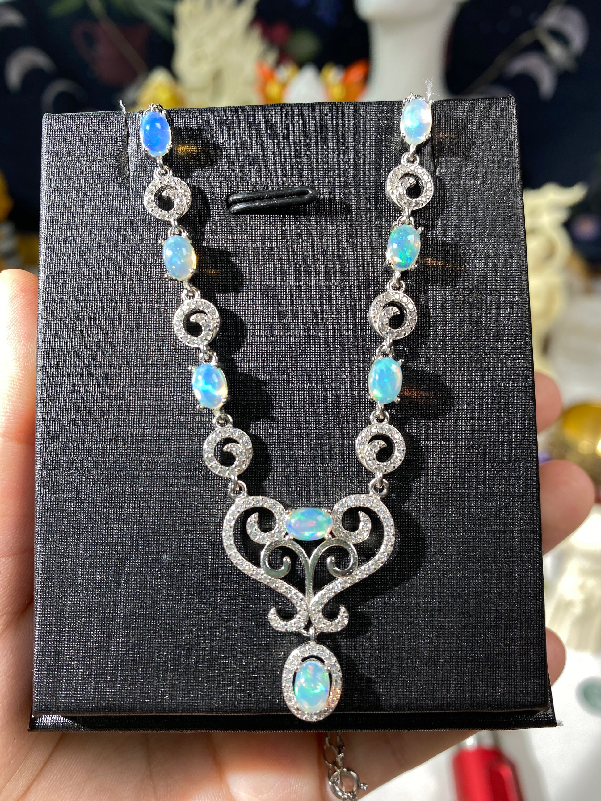 Opal Necklace 925 Sterling Silver & Genuine Opal