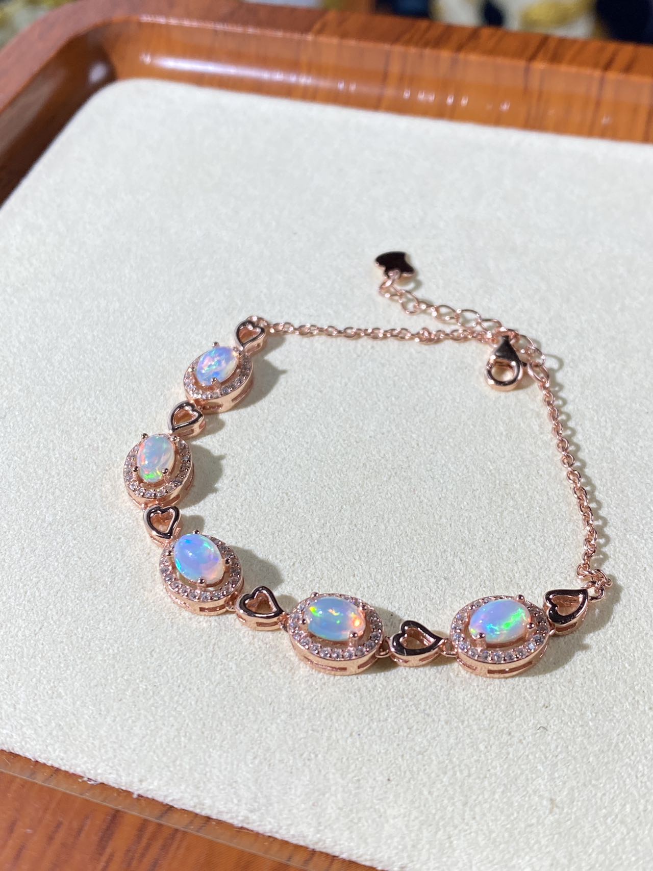 Rose Gold Opal Bracelet 925 Sterling Silver & Genuine Opal