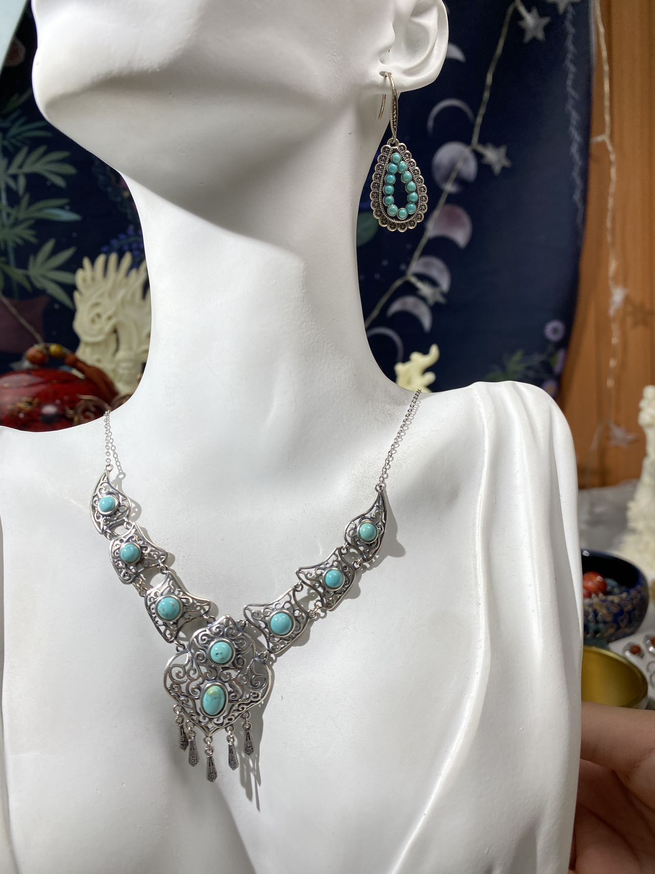 Turquoise Necklace 925 Sterling Silver & Genuine Turquoise